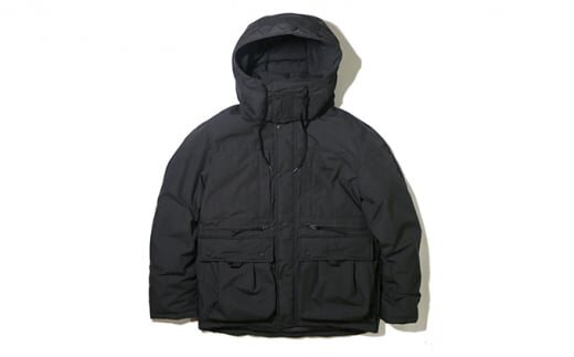 アラミド繊維を混紡した難燃素材であるタキビ生地を採用。前身頃には6つのポケットとハンドウォーマーを装備。後ろ見頃にもファスナーポケットを配置し、小物ギアを効率よく収納可能。超撥水加工を施したダウンを採用。フードは脱着式となっています。
