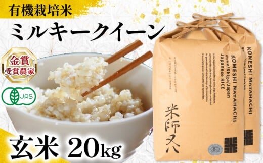 【 オーガニック米 】 新米 ミルキークイーン 玄米 10kg × 2袋 ( 令和7年産 有機JAS 認証米 オーガニック米 有機栽培米 十六代目米師又八 謹製 ブランド 米 rice ご飯 内祝い もちもち 国産 送料無料 滋賀県 竜王 ふるさと納税 )
