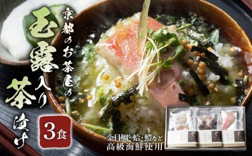 宇治和束園 玉露入り 高級海鮮 お茶漬け 3食 セット 『旨味重ね』 京都 京都府 和束 ギフト 贈り物 お茶 玉露 煎茶 かりがね 海鮮 金目鯛 蛤 鱧 お歳暮 山城物産