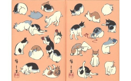 江戸の浮世絵師・歌川広重が描き、天保年間に名古屋の永楽屋から出版された版本「浮世画譜」から、かわいらしい猫を表紙に仕立てました。