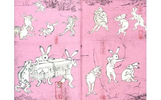 国宝「鳥獣人物戯画」から図柄を組み合わせ、表紙に仕立てました。