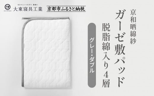 【大東寝具】~オールシーズン快適に使える敷パッド~ 京和晒綿紗 ガーゼ敷パッド(脱脂綿入り)4層(グレー・ダブル)[ 京都 寝具 老舗 敷パッド ふとん 人気 おすすめ 快眠 寝ごこち 睡眠 健康 お取り寄せ 通販 送料無料 ふるさと納税 ]