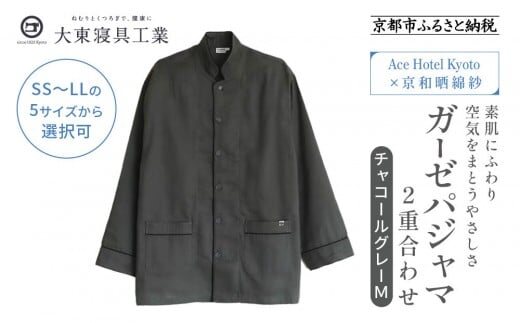【大東寝具】Ace Hotel Kyoto×京和晒綿紗コラボ ガーゼパジャマ 2重合わせ 草木染め≪チャコールグレー≫ Mサイズ(男女兼用)[ 京都 寝具 老舗 パジャマ 人気 おすすめ ガーゼ 快眠 健康 やわらかい お取り寄せ 通販 送料無料 ふるさと納税 ]