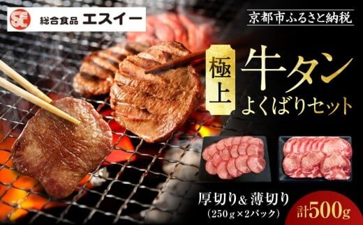 【エスイー】極上牛タンよくばりセット(厚切り&薄切り)250g×2パック 計500g[ 京都 食肉卸 自慢の肉質 牛タン セット 小分け 人気 おすすめ 肉 お肉 牛肉 焼肉 お取り寄せ 通販 送料無料 ギフト ふるさと納税 ]