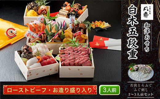 白木五段重 和洋おせち ローストビーフ・お造り盛り入り(3人前) 若狭とらふぐ ふぐ刺し 2~3人前セット ふるさと納税 正月 和風おせち 洋風おせち おせち ローストビーフ お造り盛り 3人前 若狭とらふぐ ふぐ刺し 2~3人前 セット 京都府 福知山市
