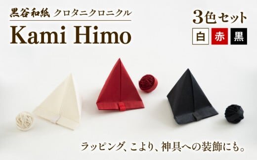 紙ひも Kami Himo 3色セット ( 白 赤 黒 ) 黒谷和紙 クロタニクロニクル 紙紐 紙ひも かみひも 手漉き 手漉き和紙 和紙 和紙紐 手染め 白 赤 黒 雑貨 ギフト 贈答 プレゼント 手芸 編み物 あみもの ラッピング インテリア しめ縄 しめなわ 飾り