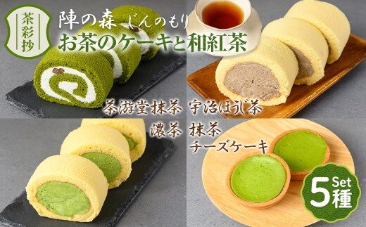茶彩抄「陣の森-じんのもり」 お茶のケーキ4種と和紅茶セット【uj-AQ003】【茶游堂(ちゃゆうどう)】