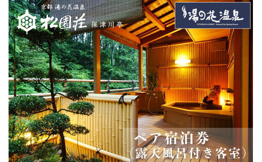 京都 湯の花温泉 松園荘保津川亭 ペア 宿泊券 (露天風呂付き 客室) 1泊2日(朝食・夕食付き) ≪京都 旅行 温泉 旅館 ホテル 観光 トラベル チケット クーポン 旅行券≫
