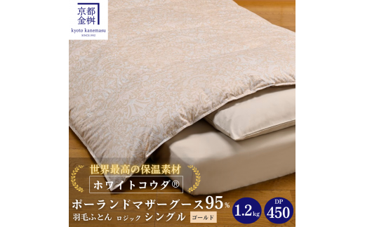 【ゴールド】<京都金桝>羽毛布団 シングル 綿100% 特殊2層キルト(ポーランド産マザーホワイトグースダウン95% ホワイトコウダ・たっぷり1.2kgふっくら仕上げ) ロジック≪ 羽毛ふとん 掛け布団 国内再洗浄 DP450 新生活 ゴールド羽毛布団 京都金桝羽毛布団 シングル羽毛布団 綿100%羽毛布団 特殊2層キルト羽毛布団 ポーランド産羽毛布団 羽毛掛け布団 羽毛布団 ≫