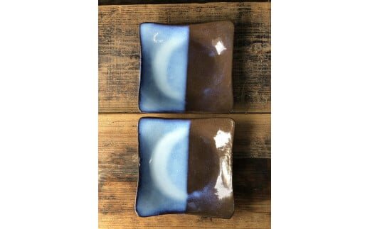 龍善ブルー 角皿 半分青い 2枚組《中皿 取り皿》