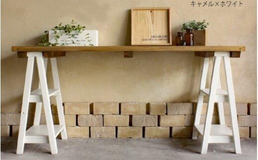 【キャメル×ホワイト】アンティーク風 無垢材 ソーホース デスク【ステップ脚】<アンティーク風 家具 Dea-Sirio> ※北海道・沖縄・離島への配送不可