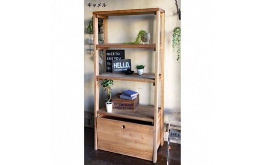 【キャメル】アンティーク風 無垢材 オープンラック【ボックス付き】4段<アンティーク風 家具 Dea-Sirio>《棚 ラック シェルフ》 ※北海道・沖縄・離島への配送不可