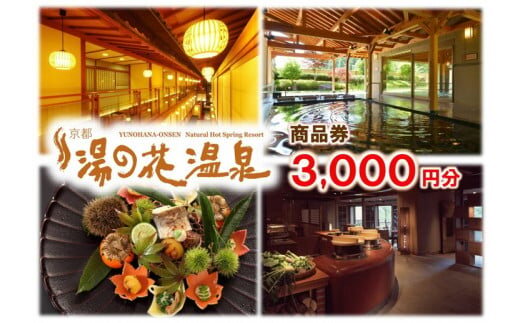 【宿泊やお食事に】京都 湯の花温泉 3,000円分 商品券 ≪京都 旅行 温泉 旅館 ホテル 観光 トラベル チケット クーポン 旅行券≫