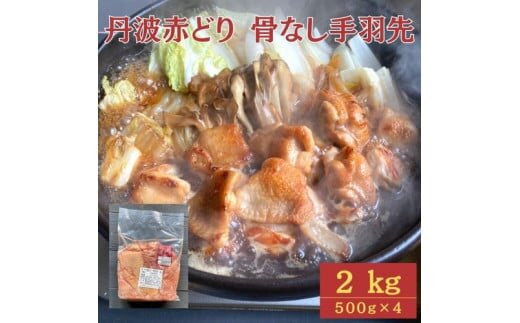 【訳あり】丹波 赤どり 骨なし 手羽先 2kg(500g×4パック)<京都亀岡丹波山本>業務用 鶏肉 冷凍 小分け