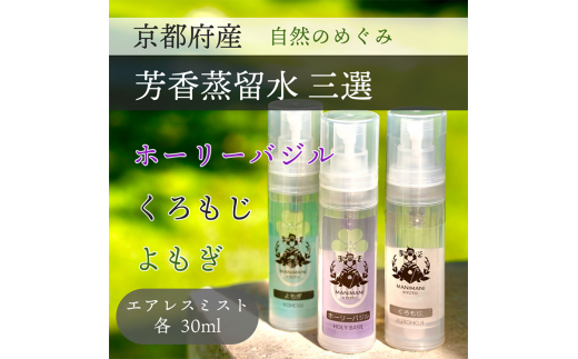 京都 芳香蒸留水 アソート3種 30ml(里山香りのミスト)ホーリーバジル・クロモジ・よもぎ | 天然の植物の香り アロマミスト アロマウォーター ルームミスト ボタニカル 無添加 携帯用
