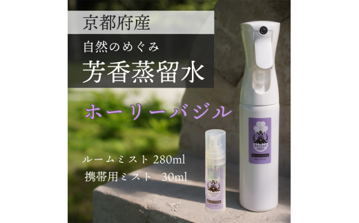 京都 ホーリーバジル芳香蒸留水 2本 280ml+30ml(里山香りのミスト&携帯用)| 天然の植物の香り アロマミスト アロマウォーター ルームミスト ボタニカル 無添加