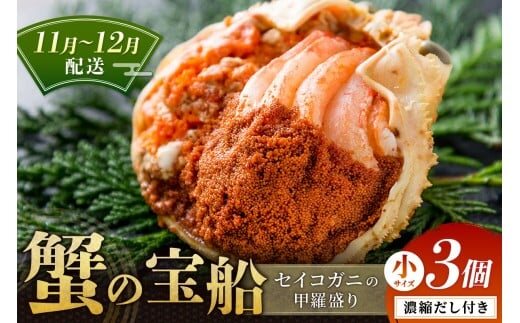 【蟹の匠 魚政】セイコガニの甲羅盛り 蟹の宝船(たからぶね)小サイズ3個セット 濃縮ダシ付(11月~12月発送) UO01237