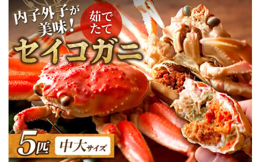 【蟹の匠 魚政】内子外子が美味! 茹でたて セイコガニ(セコ蟹)(香箱ガニ)(こっぺ)中大サイズ 5匹セット UO01381