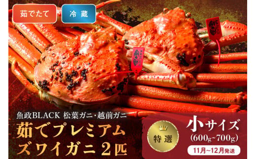 【蟹の匠 魚政】茹で プレミアムズワイガニ 魚政BLACK(松葉ガニ・越前ガニ)特撰 小サイズ(600~700g) 2匹セット (11月~12月発送)【平日】 松葉蟹 蟹 かに カニ ガニ がに ボイル 海産物 甲殻類 海の幸 まるごと UO01302