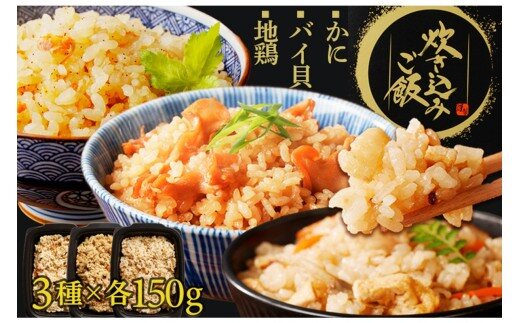 ・かにの炊き込みご飯150g×1 ・バイ貝の炊き込みご飯150g×1 ・京丹後地鶏の炊き込みご飯150g×1 |