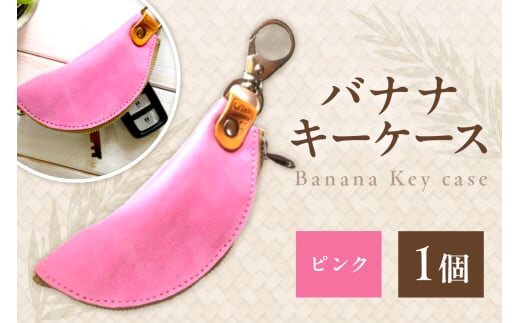 バナナキーケース(ピンク)革小物/キーケース/鍵/キー/ケース/革/レザー/牛革/ヌバック/小物/おしゃれ/ファスナー/ナスカン/選べるカラー LC00005