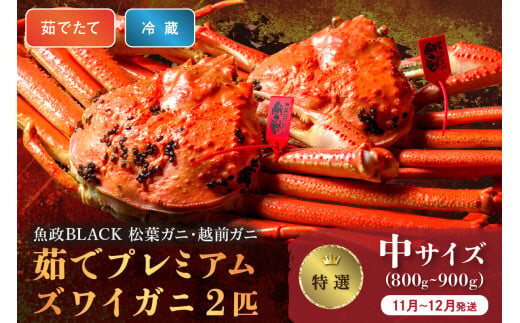 【蟹の匠 魚政】茹で プレミアムズワイガニ 魚政BLACK(松葉ガニ・越前ガニ)特撰 中サイズ(800~900g) 2匹セット (11月~12月発送)【土日祝】 松葉蟹 蟹 かに カニ ガニ がに ボイル 海産物 甲殻類 海の幸 まるごと UO01304