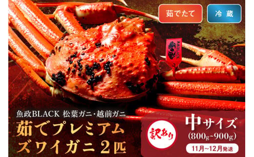 訳あり 【蟹の匠 魚政】茹で プレミアムズワイガニ 魚政BLACK(松葉ガニ・越前ガニ) 中サイズ(800~900g) 2匹セット 【11月~12月発送:土日祝】松葉蟹 蟹 かに カニ ガニ がに ボイル まるごと 海産物 海鮮 魚介 魚介類 甲殻類 海の幸 小 京都 京丹後 京丹後市 ふるさと納税 蟹 送料無料 UO01320