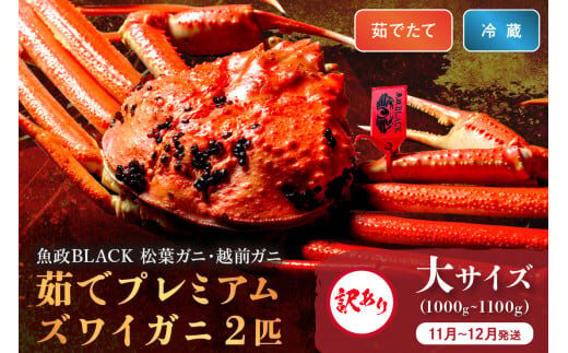 訳あり 【蟹の匠 魚政】茹で プレミアムズワイガニ 魚政BLACK(松葉ガニ・越前ガニ) 大サイズ(1000~1100g) 2匹セット【11月~12月発送:土日祝】 松葉蟹 蟹 かに カニ ガニ がに ボイル まるごと 海産物 海鮮 魚介 魚介類 甲殻類 海の幸 小 京都 京丹後 京丹後市 ふるさと納税 蟹 送料無料 UO01322
