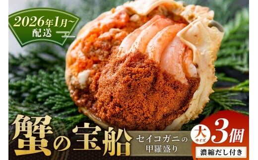 【蟹の匠 魚政】セイコガニの甲羅盛り 蟹の宝船(たからぶね)大サイズ3個セット 濃縮ダシ付(2026年1月~発送) UO01246