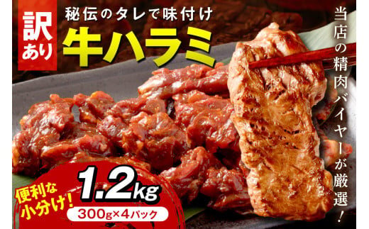【訳あり】牛ハラミ(サガリ) 秘伝のタレ込み 味付け肉 1.2kg(300g×4パック)(2026年1月上旬~発送) <牛肉 訳あり はらみ さがり 味付け肉 小分け 個包装 牛肉 タレ漬け 手作り 焼肉 肉 牛ハラミ わけあり 訳有り ワケアリ 焼肉 日用品> YK00462