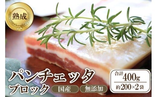パンチェッタブロック(豚バラ肉の塩漬け) 約200g×2袋(合計400g以上となるようにお送りいたします) |