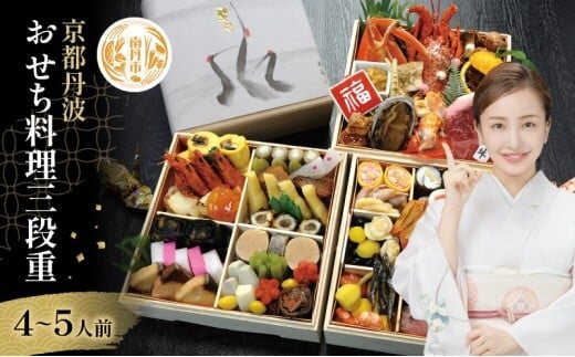 [№5334-0291]【京都府南丹市】おせち 京都丹波 八光館 おせち料理 三段重(4~5人前)12月31日お届け お節 正月 年末 迎春 冷蔵 ギフト お取り寄せ プレゼント グルメ 縁起物 国内産 南丹市 京都府