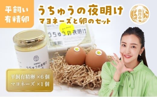 [№5334-0461]うちゅうの夜明け 平飼い有精卵 6個 マヨネーズセット 卵 たまご 濃厚 調味料 マヨネーズ 有精卵 米酢使用 京都府 南丹市 【※3月15日以降出荷】