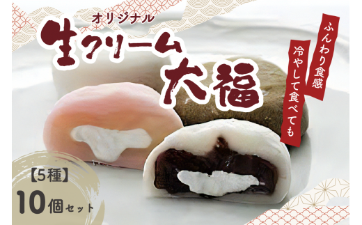オリジナル生クリーム大福 5種 10個セット 大福 セット 詰め合わせ 詰合せ きなこ 抹茶 チョコ フランボワーズ ラムレーズン 生クリーム お餅 もち 和菓子 手土産 贈り物 贈答 デザート お茶菓子 【020-02】
