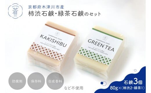 ふるさと納税 ふるさと 柿渋石鹸 柿渋せっけん 緑茶石鹸 緑茶せっけん 手作り石鹸 せっけん 手作りせっけん専門店 Natural蒼 お肌 ギフトボックス ギフト しっとり 保湿 柿渋 緑茶 コールドプロセス製法 [80gx3個] 京都府 木津川市