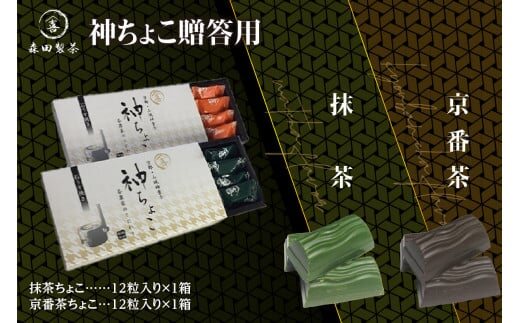 【森田製茶】 神ちょこ贈答用 抹茶[1箱(12粒入り)] 京番茶[1箱(12粒入り)] 抹茶 高級抹茶 抹茶チョコ 宇治抹茶チョコ まっちゃ チョコ 京番茶チョコ ちょこ 石臼でひいた抹茶 京都府 木津川 冷蔵【078-02】