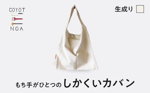 coyotE noaのもち手がひとつのしかくいカバン<生成り> オリジナル ハンドメイド ハンドメイドバッグ 手作り バッグ コットンキャンバス生地 エコバッグ コンパクト 【036-01-E】
