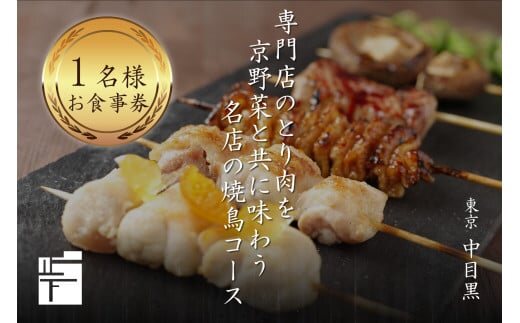専門店のとり肉を京野菜と共に【東京中目黒】で味わう1名様焼鳥コースお食事券 【064-08】