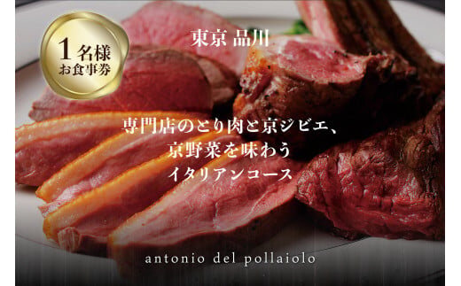 - 専門店のとり肉と京ジビエ、京野菜を【東京品川】で味わう1名様イタリアンコースお食事券