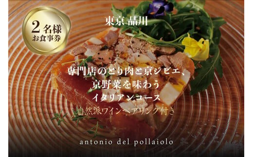 専門店のとり肉と京ジビエ、京野菜を【東京品川】で味わうペアリング3杯付き2名様イタリアン食事券 【064-21】