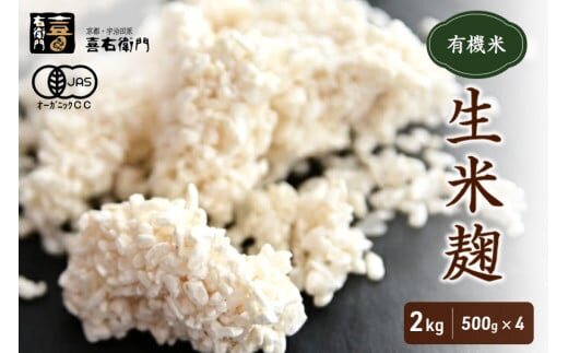 京都・喜右衛門 有機 生米麹 2㎏(500g×4)真空パック〈オーガニック 無添加 発酵食品 生麹 まろやか 味噌作り 甘酒作り 酵母作り〉 S1303改