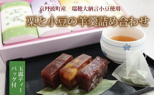 - 栗と小豆の羊羹3種と玉露ティーバッグの詰め合わせです。