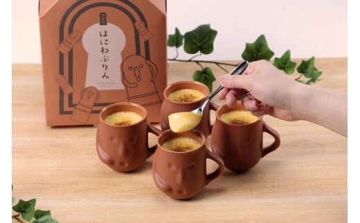 はにわ型のかわいい陶器に入ったプリンは食べ終わってからも形に残りグリーンを植えたり小物入れに。