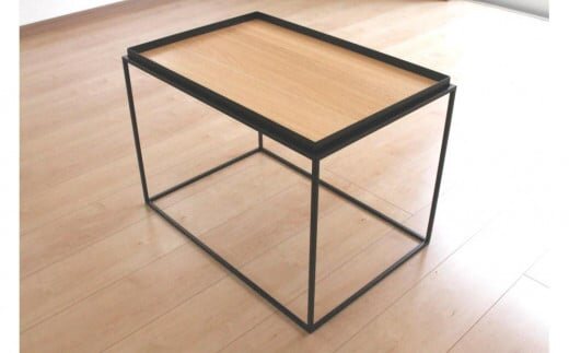 天板をはずしてトレイとしても使えるテーブルです。大きさ、カラーが選べます。本体フレームは9mm角パイプ。トレイは1.6mmの鉄板を曲げて溶接しています。