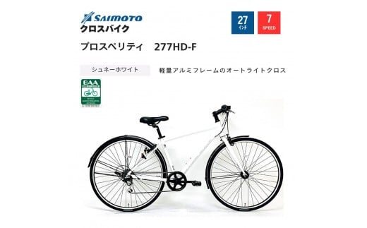 【サイモト自転車 】プロスペリティ クロスバイク 27型 7段変速 (A6935)【完全組立】【シュネーホワイト】
