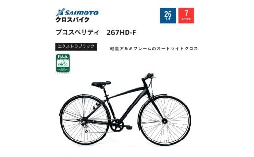 【サイモト自転車 】プロスペリティ クロスバイク 26型 7段変速 (A6937)【完全組立】【エクストラブラック】