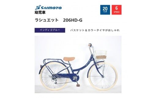 【サイモト自転車 】ラシュエット ジュニアシティ 20型 6段変速 (WN1528)【完全組立】【インディゴブルー】