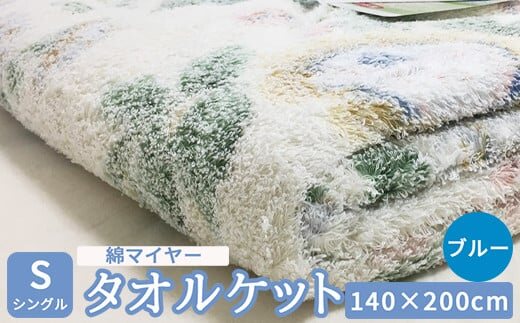 タオルケット (綿マイヤータオルケット) シングル 140×200cm ブルー 1枚 S-13193BL [4732]