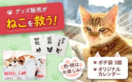 ねこ雑貨セット WithCatオリジナルカレンダー&ポチ袋 猫 保護猫 猫グッズ おもちゃ 雑貨 保護猫支援 ネコ 大阪府高槻市/WithCat [AOEI003]