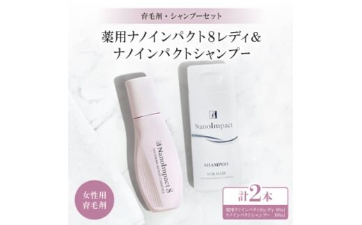 ■お礼品の内容について ・薬用ナノインパクト8レディ[60ml×1本] 製造地:大阪府枚方市 使用期限:製造日から3年 ・薬用ナノインパクトシャンプー[150g×1本] 製造地:大阪府枚方市 使用期限:製造日から3年 |
